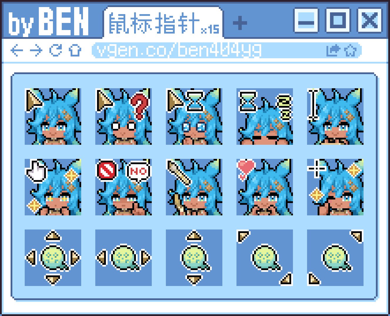 Enjoy a cute and adorable cursor set!Amazing cursors were done by 乱涂乱画BENPlease check them out on their socials: